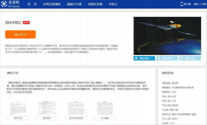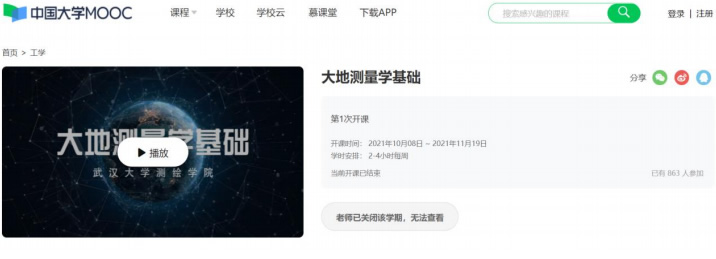 | 《测绘学概论》 https://www.icourse163.org/course/WHU-1449565165?from=searchPage |
