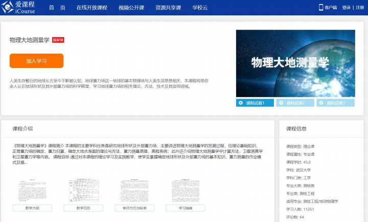 | 2. | 物理大地测量学 https://www.icourses.cn/sCourse/course_6646.html |