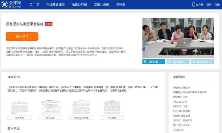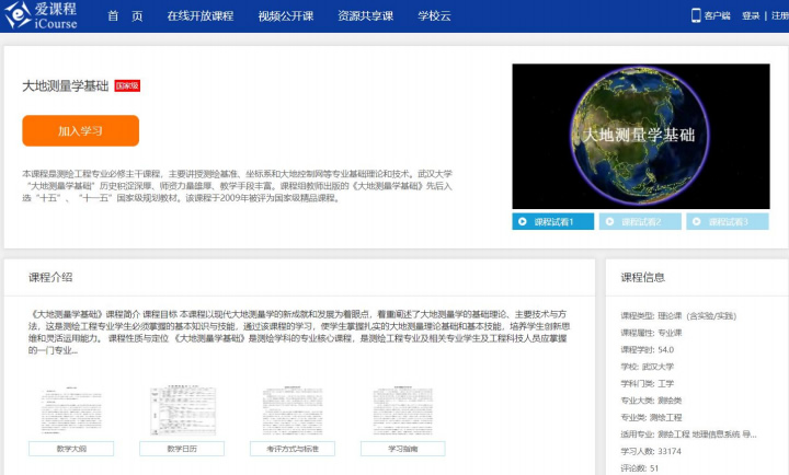 | 3. | 大地测量学基础 https://www.icourses.cn/sCourse/course_3251.html |
