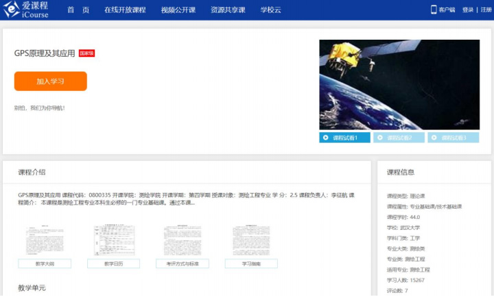 | 5. | GPS 原理与应用 https://www.icourses.cn/sCourse/course_6644.html |