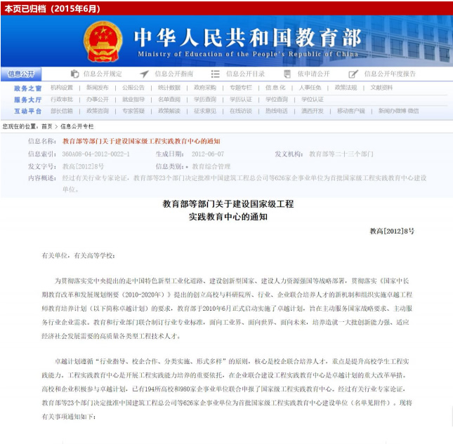 | 1 | 国家级 | 北京东方道迩信息技术股份有限公司国家级工程实践教育中心 | 2012.06.07 |