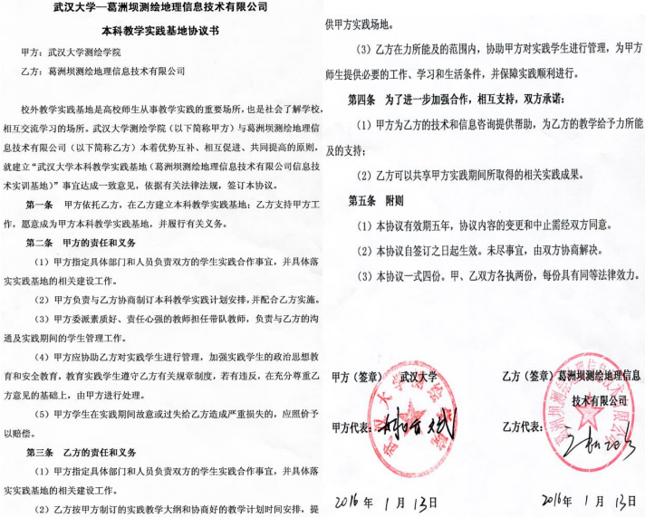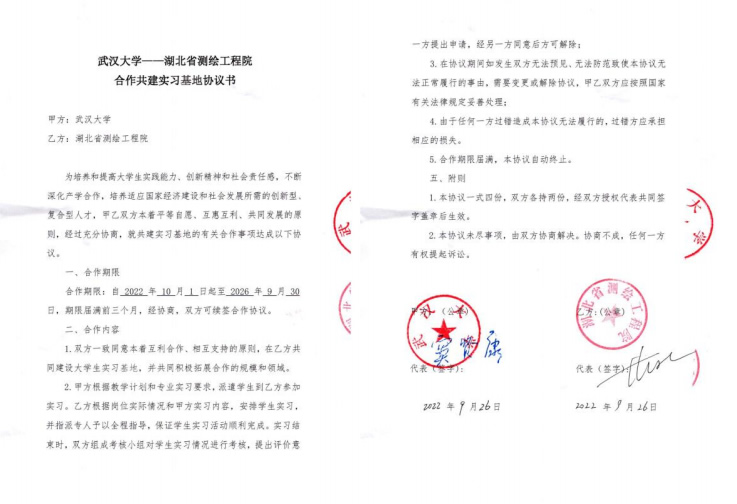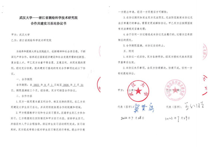| 5 | 校级 | 武汉大学-浙江省测绘科学技术研究院合作共建实习基地 | 2022.7.28 |