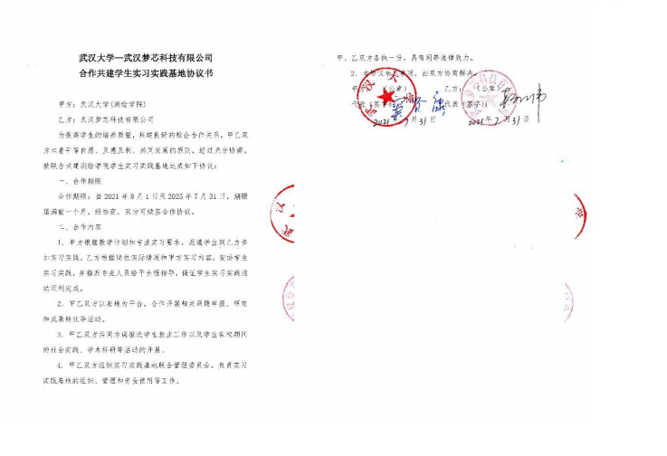 | 6 | 校级 | 武汉大学-武汉梦芯科技有限公司合作共建学生实习实践基地 | 2021.7.31 |