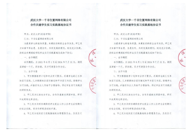 | 7 | 校级 | 武汉大学-千寻位置网络有限公司合作共建学生实习实践基地 | 2021.7.31 |