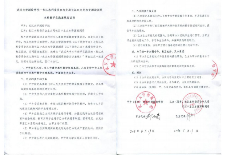 | 13 | 院级 | 武汉大学测绘学院—长江水利委员会水文局长江口水文水资源勘测局本科教学实践基地 | 2018.05.17 |