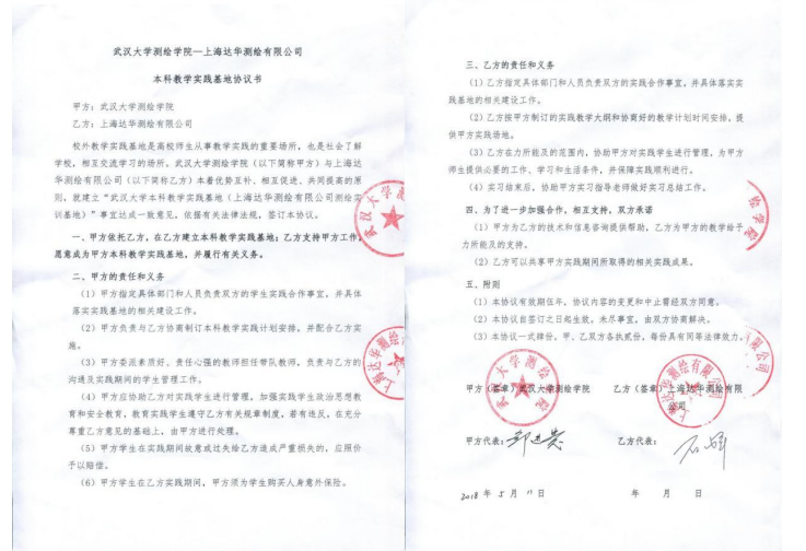 | 14 | 院级 | 武汉大学测绘学院—上海达华测绘有限公司本科教学实践基地 | 2018.05.11 |