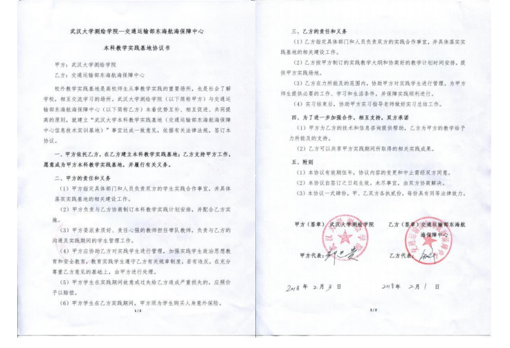 | 16 | 院级 | 武汉大学测绘学院—交通运输部东海航海保障中心本科教学实践基地 | 2018.02.03 |