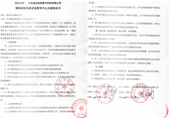 | 22 | 院级 | 武汉大学-北京威远图易数字科技有限公司测绘虚拟仿真实验教学中心 | 2015.09.28 |