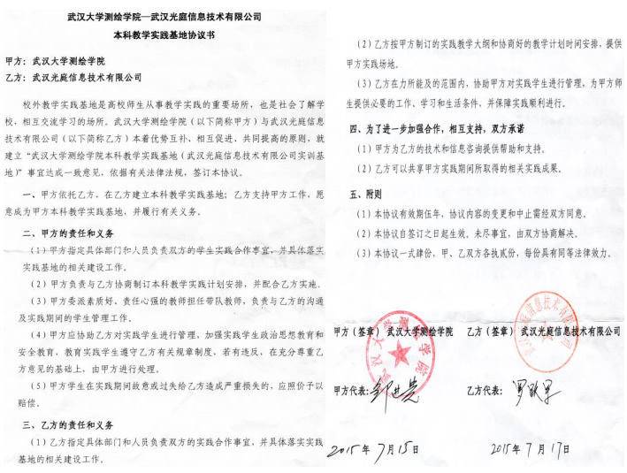 | 24 | 院级 | 武汉大学测绘学院-武汉光庭信息技术有限公司本科教学实践基地 | 2015.07.17 |