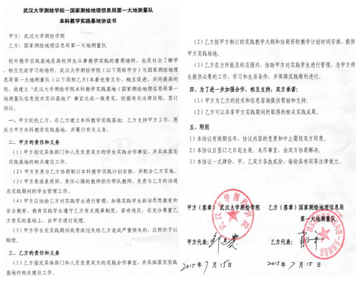 | 25 | 院级 | 武汉大学测绘学院-国家测绘地理信息局第一大地测量队本科教学实践基地 | 2015.07.15 |