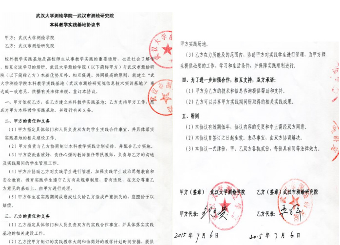 | 26 | 院级 | 武汉大学测绘学院-武汉市测绘研究院本科教学实践基地 | 2015.07.06 |