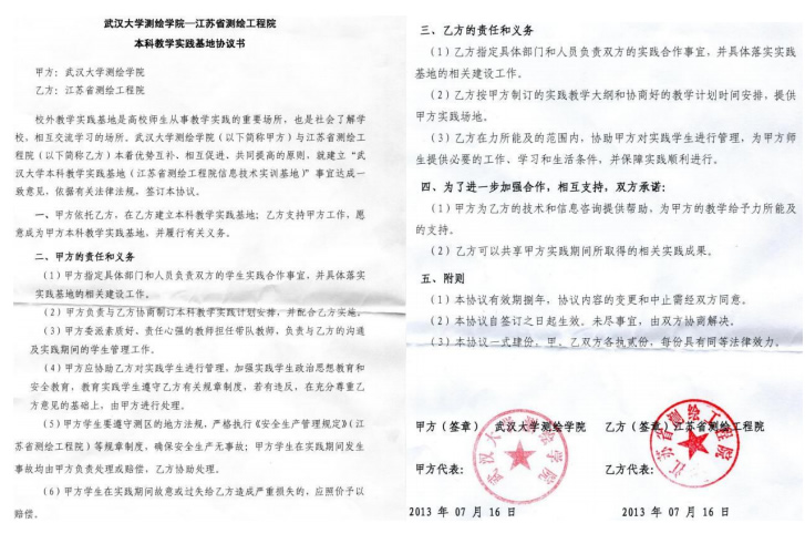 | 27 | 院级 | 武汉大学测绘学院-江苏省测绘工程院本科教学实践基地 | 2013.07.16 |