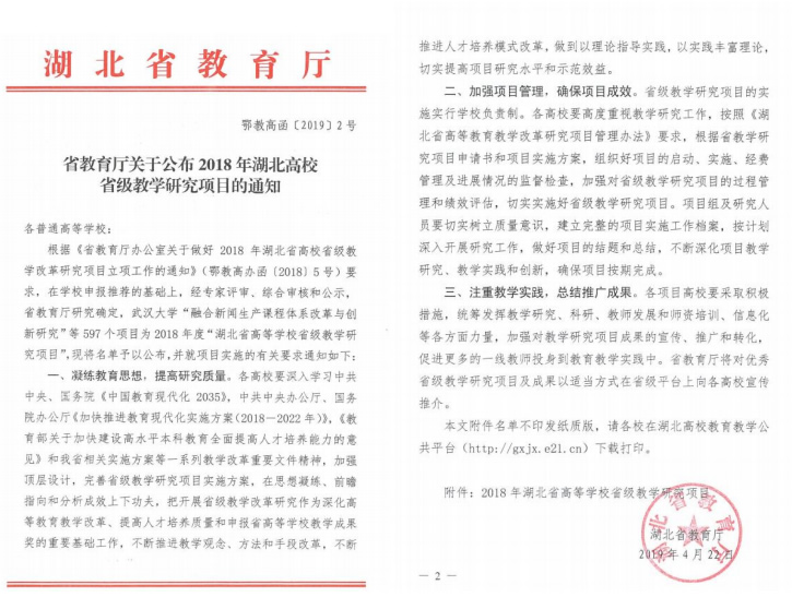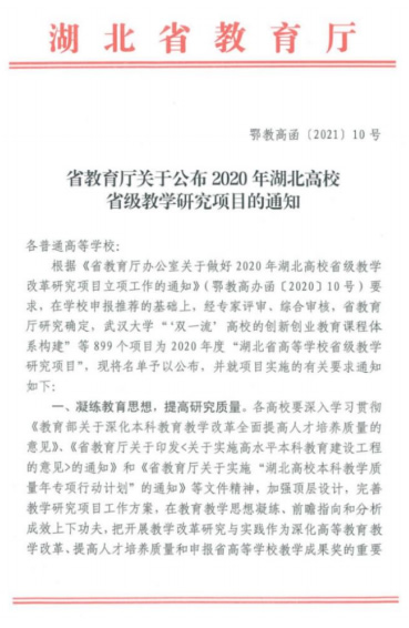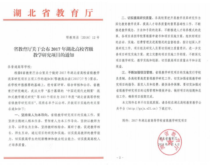 | 10. | “新工科”和“双一流”建设背景下教学督导模式创新研究与实践 | 花向红 邹进贵 虞 晖 黄劲松 秦咏梅 |