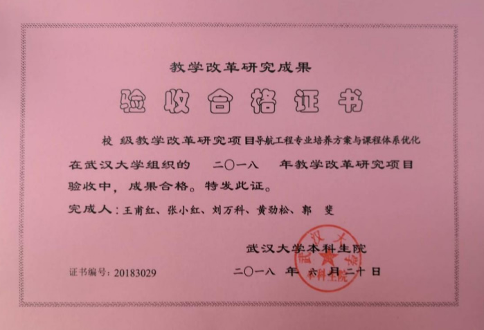 | 29. | 《卫星导航原理》MOOC 课程建设 | 王甫红 黄劲松 张小红 刘万科 徐晓华 李星星 周晓慧 郭 斐 |