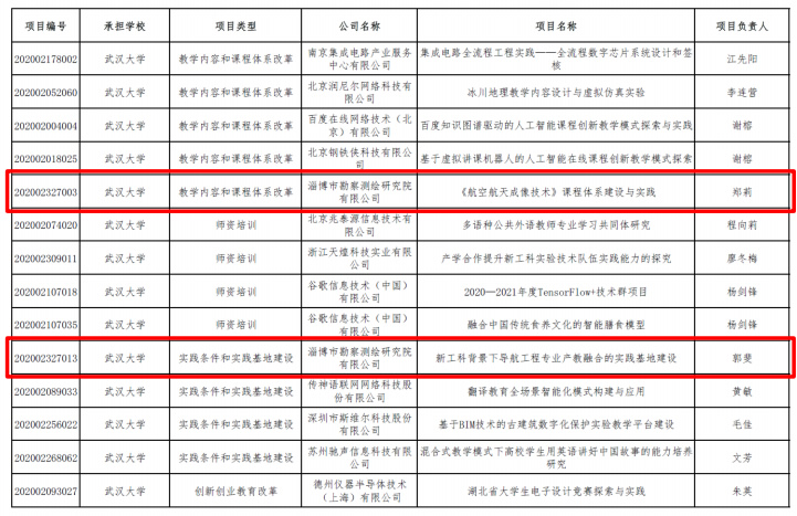| 6. | 产学合作协同育人项目“新工科背景下导航工程专业产教融合的实践基地建设” | 郭 斐 刘万科 朱智勤 张万威 |