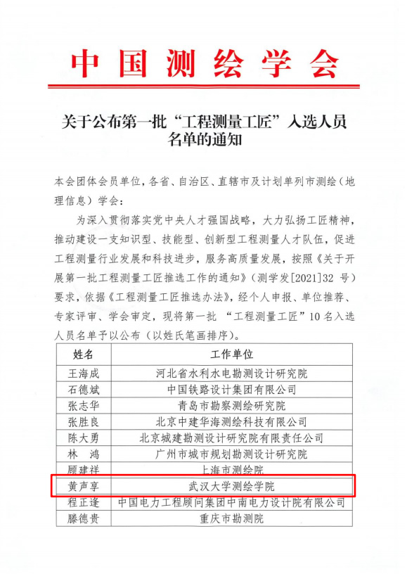 教师队伍建设 — 全国首批“十大工程测量工匠”